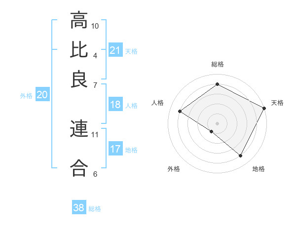 高比良 連合さんの総格は38画の4点!