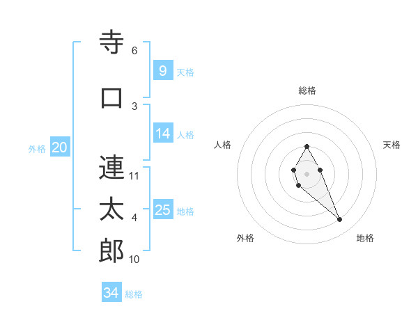 寺口 連太郎さんの総格は34画の2点!