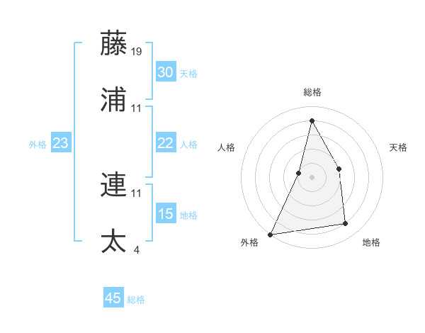 藤浦 連太さんの総格は45画の4点!