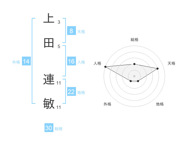上田 連敏さんの総格は30画の2点!