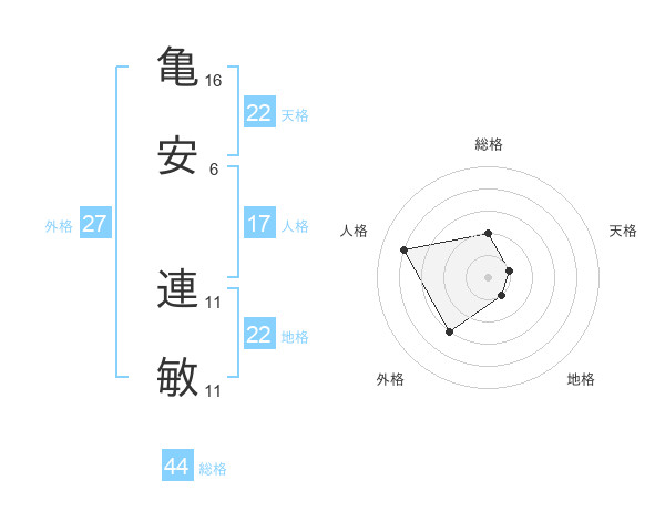 亀安 連敏さんを姓名の画数から五運を鑑定