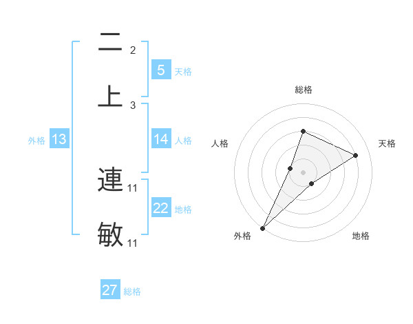 二上 連敏さんの外格は13画の5点!