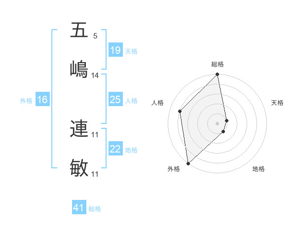 五嶋 連敏さんを姓名の画数から五運を鑑定