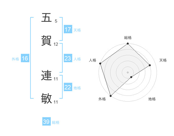 五賀 連敏さんの外格は16画の5点!