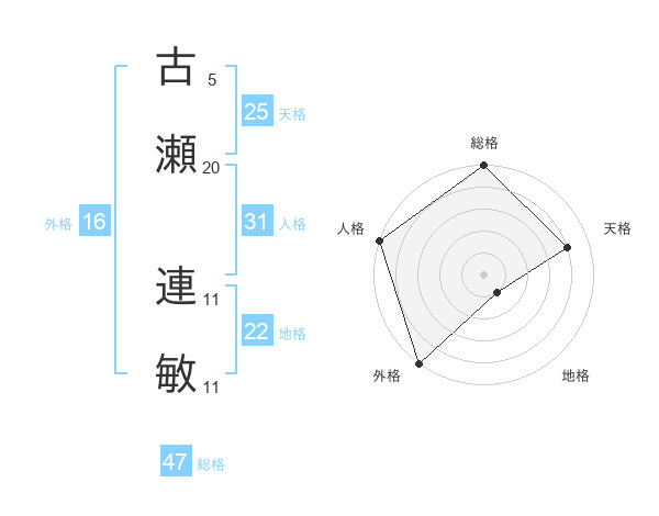 古瀬 連敏さんの総格は47画の5点!