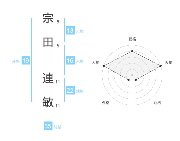 宗田 連敏さんの天格は13画の5点!