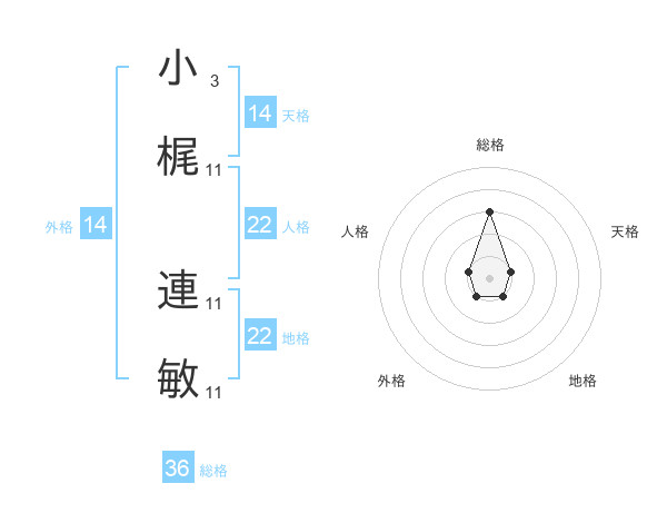 小梶 連敏さんを姓名の画数から五運を鑑定