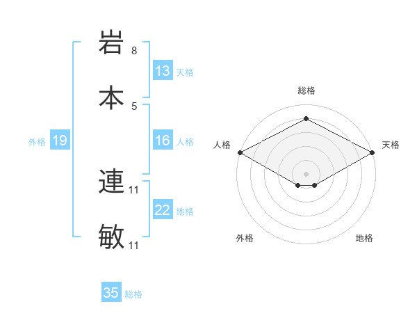 岩本 連敏さんの総格は35画の4点!
