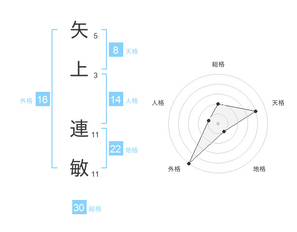 矢上 連敏さんの地格は22画の1点!
