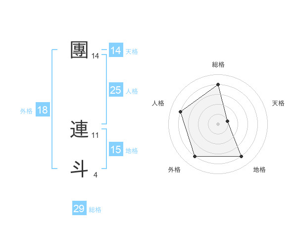 團 連斗さんの総格は29画の4点!