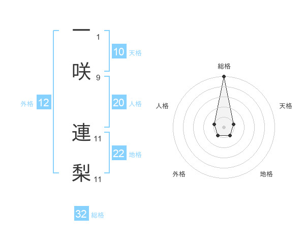 一咲 連梨さんの総格は32画の5点!