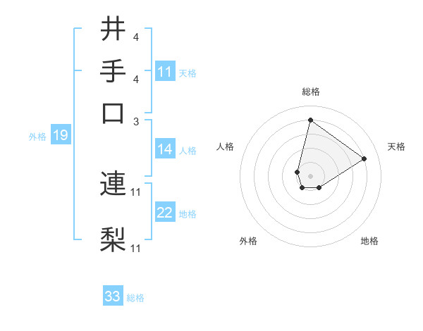 井手口 連梨さんの総格は33画の4点!