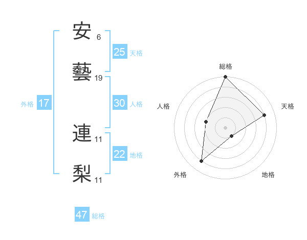 安藝 連梨さんを姓名の画数から五運を鑑定