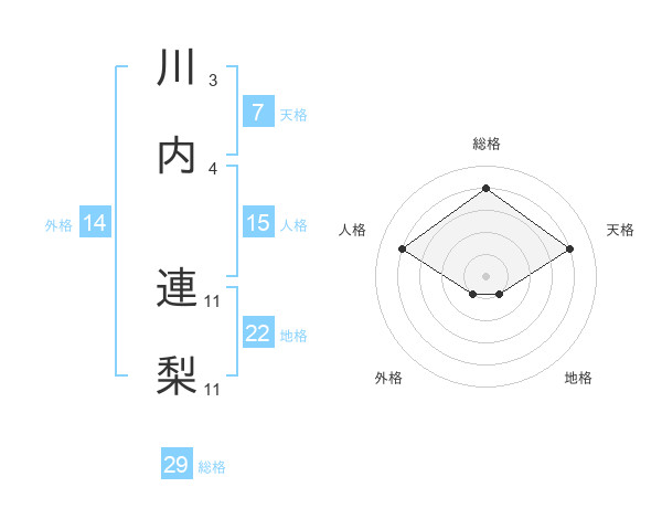 川内 連梨さんの総格は29画の4点!