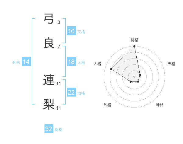 弓良 連梨さんの総格は32画の5点!