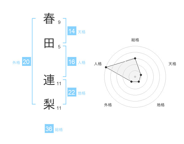 春田 連梨さんの天格は14画の1点!