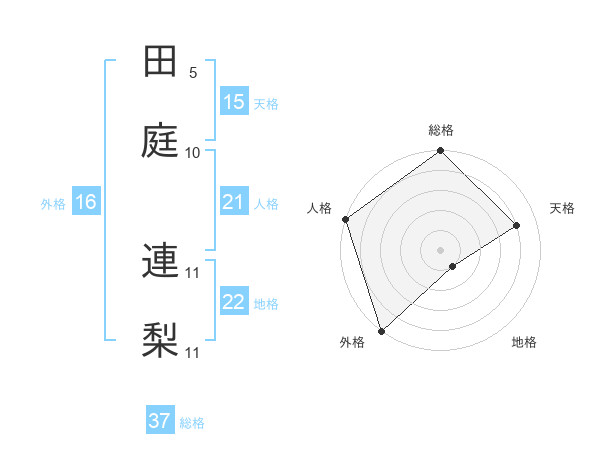 田庭 連梨さんの総格は37画の5点!