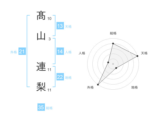 髙山 連梨さんの天格は13画の5点!