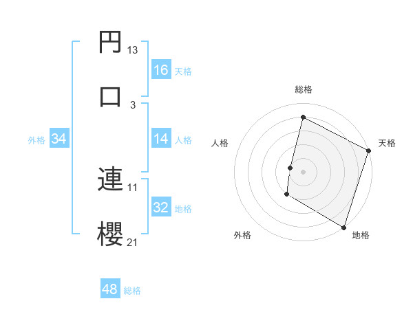 円口 連櫻さんを姓名の画数から五運を鑑定