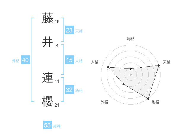 藤井 連櫻さんの天格は23画の5点!
