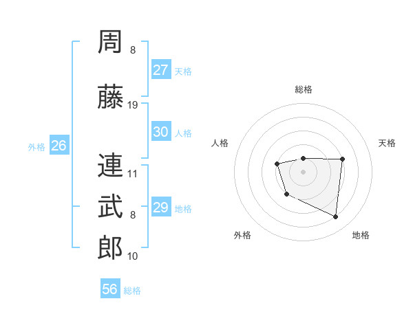 周藤 連武郎さんを姓名の画数から五運を鑑定