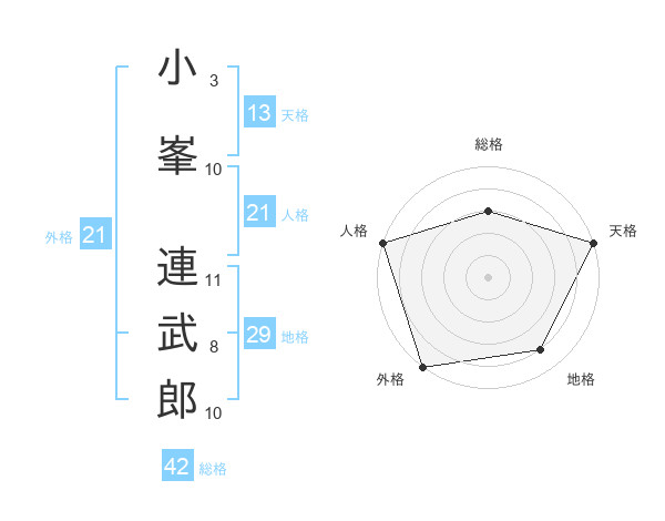 小峯 連武郎さんを姓名の画数から五運を鑑定