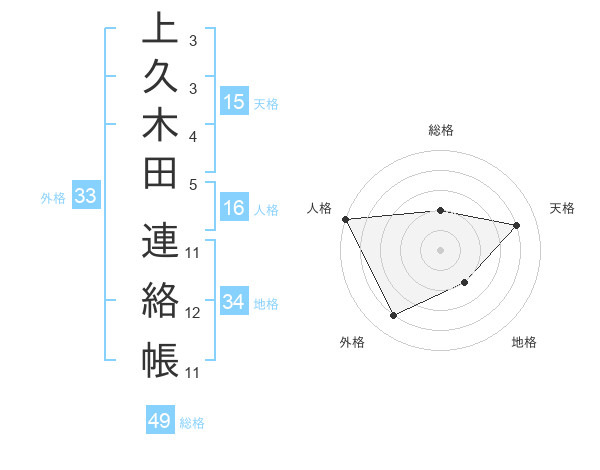 上久木田 連絡帳さんの総格は49画の2点