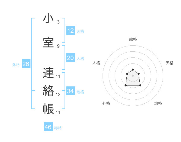 小室 連絡帳さんを姓名の画数から五運を鑑定