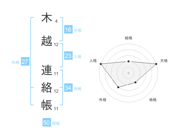 木越 連絡帳さんの総格は50画の2点!