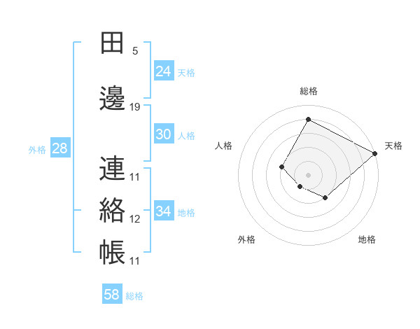 田邊 連絡帳さんを姓名の画数から五運を鑑定