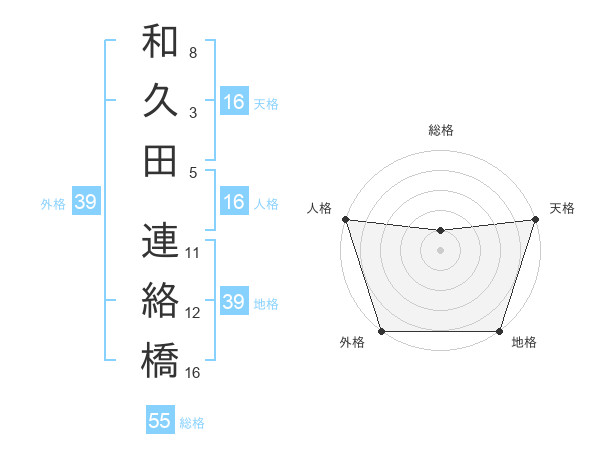 和久田 連絡橋さんの総格は55画の1点!