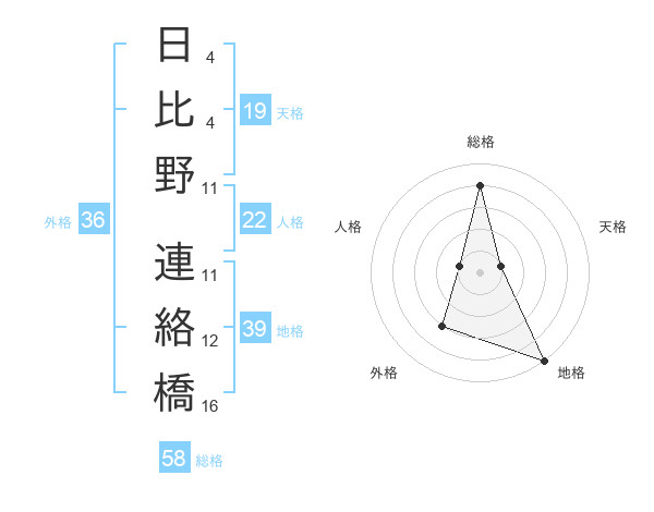 日比野 連絡橋さんを姓名の画数から五運を鑑定