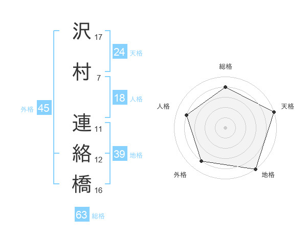 沢村 連絡橋さんを姓名の画数から五運を鑑定