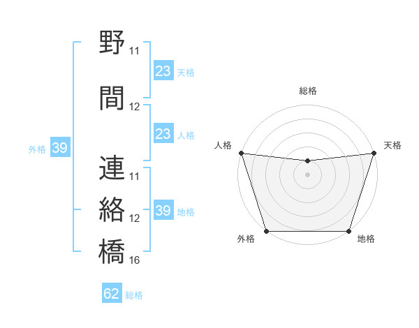 野間 連絡橋さんを姓名の画数から五運を鑑定