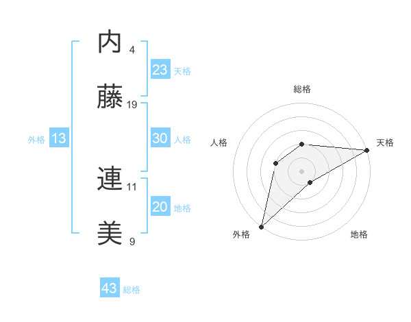 内藤 連美さんの総格は43画の2点!