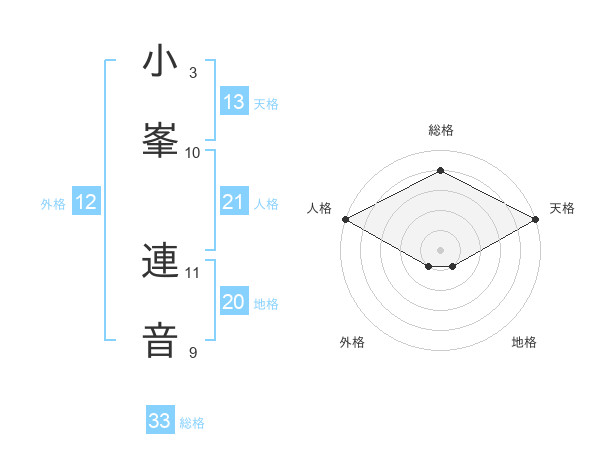 小峯 連音さんの天格は13画の5点!