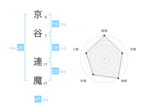 京谷 連魔さんを姓名の画数から五運を鑑定