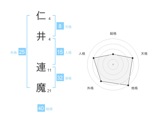 仁井 連魔さんを姓名の画数から五運を鑑定