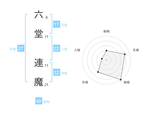 六堂 連魔さんを姓名の画数から五運を鑑定
