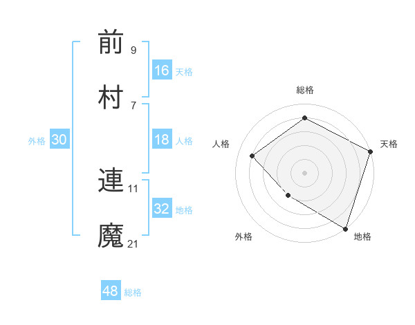 前村 連魔さんの総格は48画の4点!