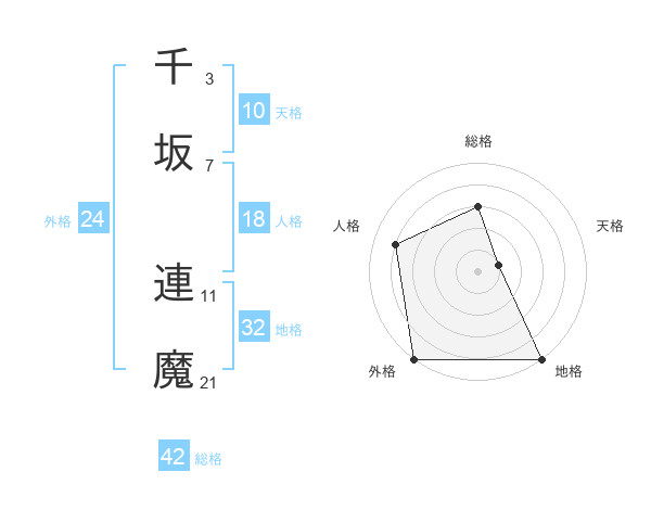 千坂 連魔さんの天格は10画の1点!