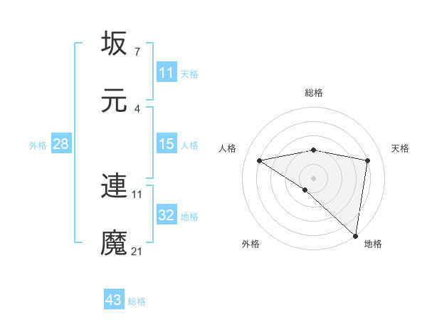 坂元 連魔さんを姓名の画数から五運を鑑定