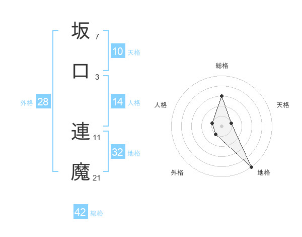 坂口 連魔さんを姓名の画数から五運を鑑定