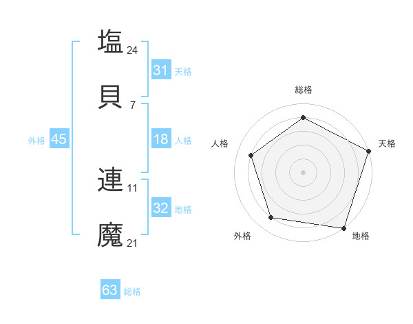 塩貝 連魔さんの総格は63画の4点!