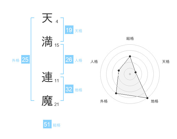天満 連魔さんの総格は51画の3点!