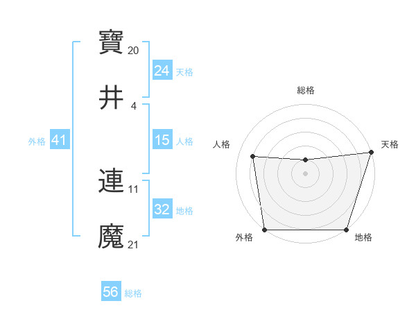寶井 連魔さんの外格は41画の5点!