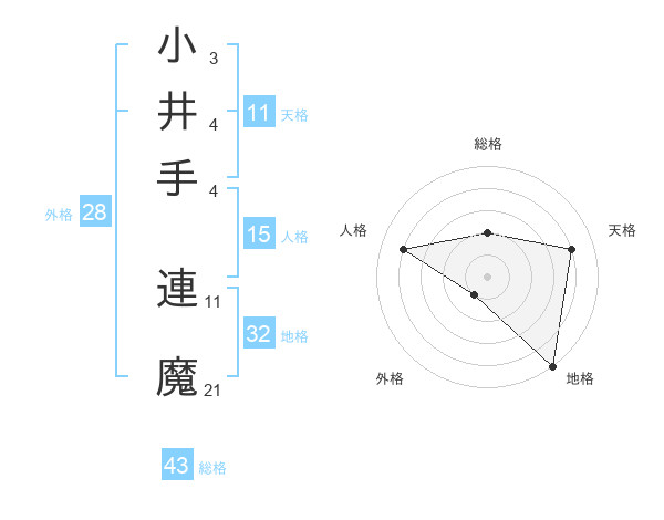小井手 連魔さんを姓名の画数から五運を鑑定