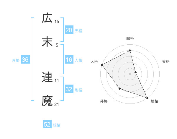 広末 連魔さんの総格は52画の4点!