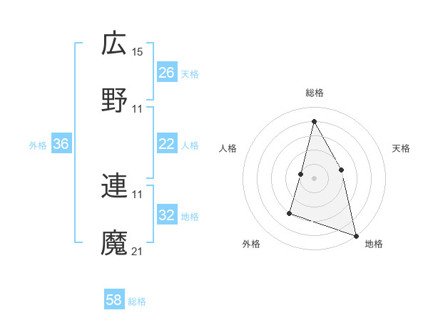 広野 連魔さんの総格は58画の4点!