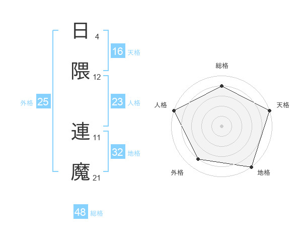 日隈 連魔さんの天格は16画の5点!